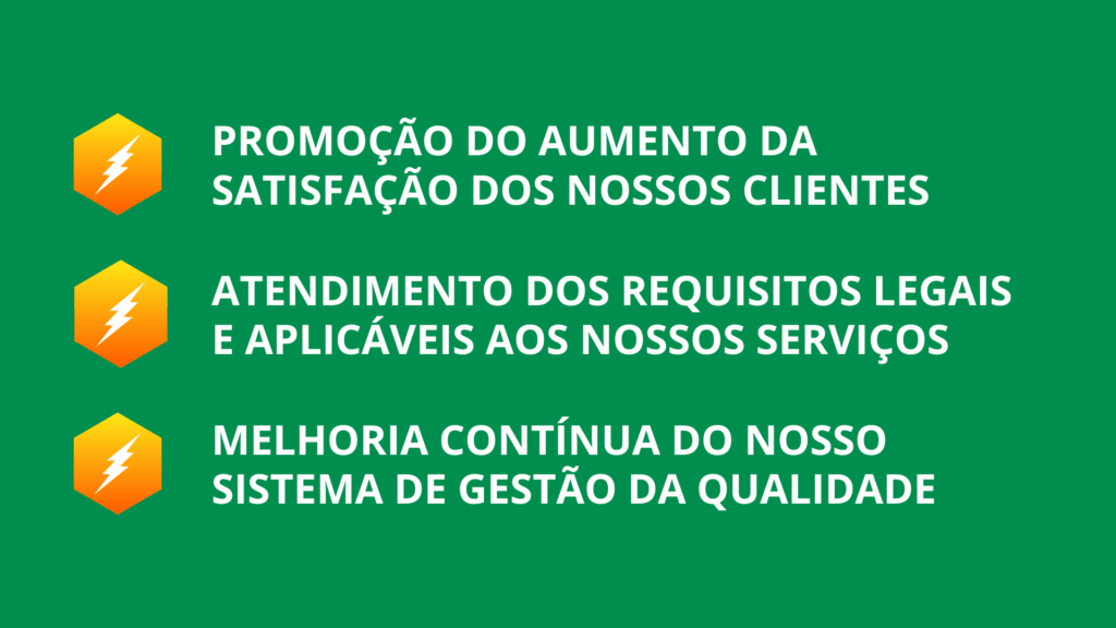 A empresa MM ENERGIA fornecedora de serviços de Construção e Manutenção de Redes Elétricas Energizadas e Desenergizadas, através da sua experiência sólida no mercado, compromete-se com os seguintes princípios: promoção do aumento da satisfação de seus clientes, atendimento dos requisitos legais e aplicáveis aos seus serviços e melhoria contínua do seu Sistema de Gestão da Qualidade.